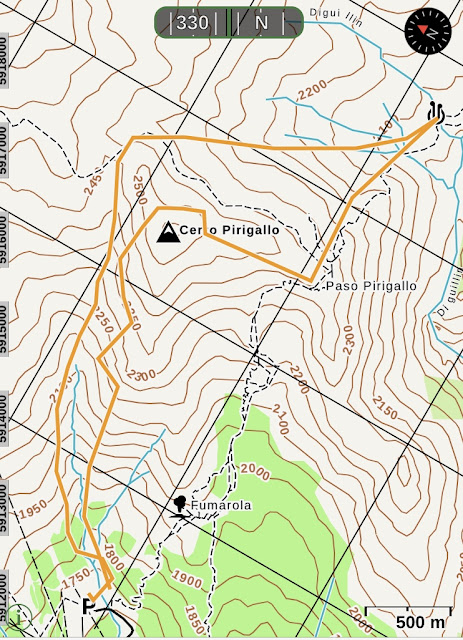 As we reached the pass at about 2400 metres the calm turned into a storm. We turned into marionettes of the wind gusts with our movements increasingly resembling the first walking attempts of a new-born deer. The volcano looked anything but inviting and so not much discussion was needed for plan B to come into effect: Aguas Calientes.